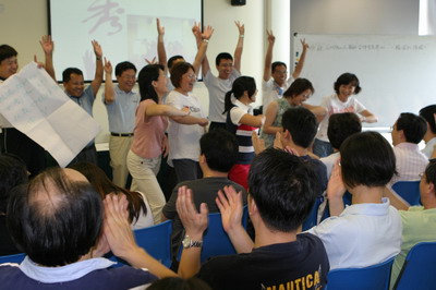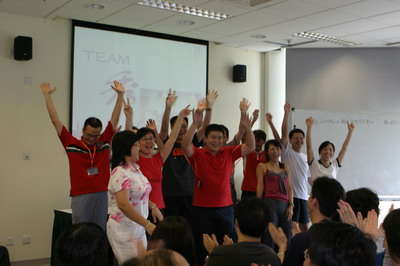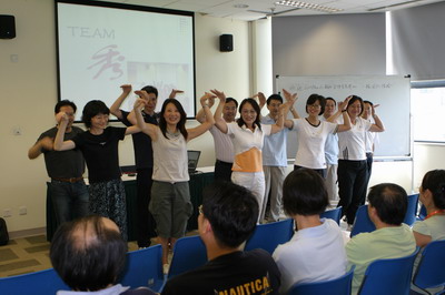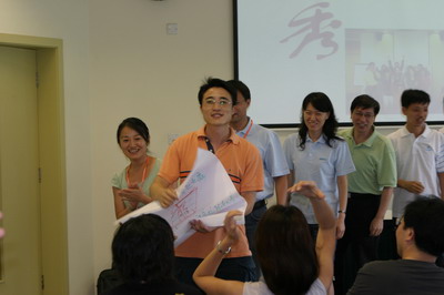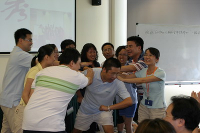 训练由一铭培训的培训师带领,经过一个小游戏,大家的情绪被调动了起来,每一个人都在欢声笑语中融入了团队。接着,培训师把大家分成了五组,并给每一个组分配了任务:选队长,命队名,找队歌,寻对徽。各组都出色、快速地完成了任务并由一起展示队伍的风采。奥运宝贝组合和众鑫队更是以出色的表现赢得了满堂彩!在随后的“七巧板”任务中,众鑫队又一次以满分的成绩圆满完成任务,其他队也都取得不错的成绩。通过这一环节的比赛,每位同学都深入地融入了团队,并增进了了解。