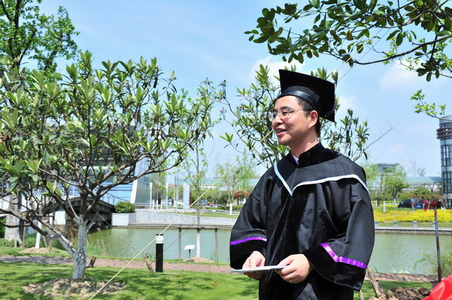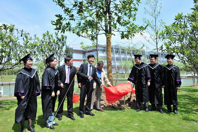 在阳光明媚的四月,百花争妍的季节,EMPAcc项目八期班同学身着硕士袍,神采奕奕地聚集在他们亲自选种的白玉兰树下,与上海国家会计学院和香港中文大学的教授,及项目办