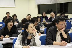 12日晚间的讲座是在轻松愉悦的氛围下进行的. 张向菁博士拥有丰富的从业和教学经验, 并在企业员工的心理状态研究方面有很深的造诣. 12日的讲座她充分利用了音响, 视频等多媒体效果, 结合趣味测验和小游戏, 让大家在欢声笑语中了解个人心理活动的特点, 并对自己的压力应对能力有了一个比较概括的认识.