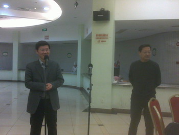 晚宴气氛友好,在11期班长许如忠的主持下,李院长和黄教授分别发言。李院长对11期班级入学半年以来的成绩给予了肯定,并预祝大家在接下来的课程中取得开门红,2011年万事如意。黄教授则肯定了1月课程中学员们表现出的积极学习,刻苦专研的精神,并预祝学员们在《会计信息系统与内部控制》的考试中取得好成绩。