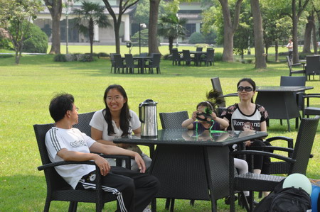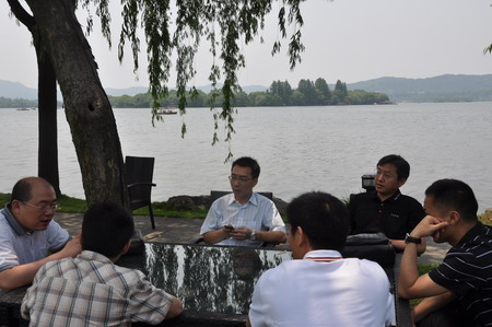 6月3日一大早,大家早早的穿戴整齐,准备去西湖边上的宝石山一游。宝石山虽然不是名山,但是坐落在西湖边上,浸染了这里千年的文化,倒也有一种别样的情怀。这里山坡缓平,无需气喘吁吁就能轻松走到山顶。四周的小路错落交通,细细看来,很多青石板上似乎还模模糊糊的留着宋明名家的手迹。在山林里穿梭的,不止有行人,偶尔也有松鼠和布谷鸟。如果用闹中取静来形容宝石山,似乎过于肤浅。因为,虽然宝石山在城中,沿途也不少住户,但是“闹”似乎同这里是绝缘的,即使游人如织的走过它的小路,也不会让人感觉有损它的宁静。在这个纷扰的时节,同学们似乎摆脱了城市的忙碌,只是静心欣赏着这里的近乎奢华的清新。下午学员们来到西湖边上一座头顶蓝天树荫,下踩绿草泥土,眼前平湖秋月的饭店。在这里一壶清茶,一缕湖风,悠哉游哉的度过了一个令城市中人无比艳羡的下午。