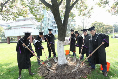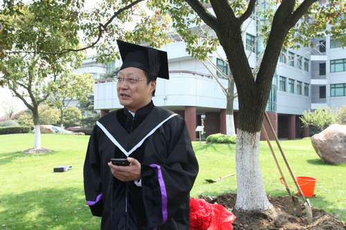 四月的上海国家会计学院,春风和熙,新荷吐蕊。7日上课期间,EMPAcc十一期60名同学整整齐齐穿戴着硕士服,来到学院七号公寓能源中心旁,在这里即将举行一年一度的EMPAcc毕业班植树典礼。