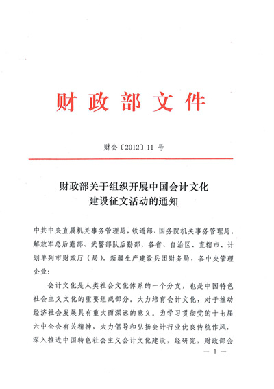 财政部关于组织开展中国会计文化建设征文活动的通知