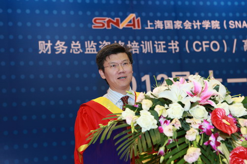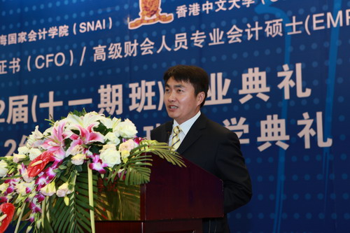 EMPAcc11期班长,苏州工业园区金鸡湖发展有限公司财务总监许如忠先生发表了热情洋溢的讲话。在讲话中,许班长申请回顾了11期班级所有同学2年来在上海国家会计学院的美好生活和回忆,他深刻的感到,两年来的学习,使大家更加思考:人生不是一场物质盛宴,而是一种心灵修炼。事业的高低、职业的成就是优秀的一种外在表现,但如果要持续地成长、快乐充实地成长,并不断地从优秀走向卓越,应该具有兼济天下的抱负、关怀世间的情怀以及“居高怀仁、臻善存德”的精神取向。