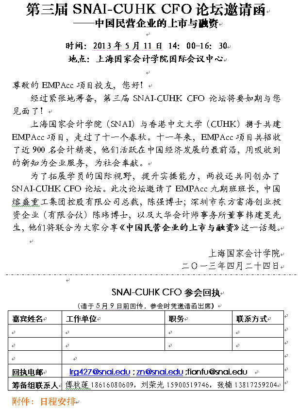 关于举办第三届SNAI-CUHK CFO论坛通知