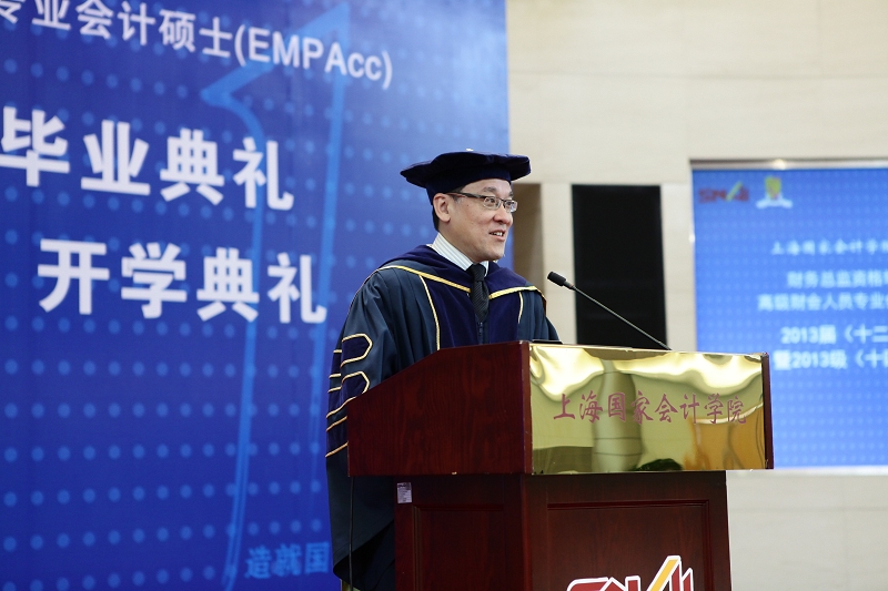 上海国家会计学院李扣庆院长在祝贺毕业生顺利毕业、十四期新同学即将开展精彩的学习旅程之时,也宣布了一个重大信息,即EMPAcc项目的学位认证在刚刚过去的几天获得了国家教育部的认可。这是EMPAcc项目十一年发展的实力证明,也是国家教育部门对EMPAcc项目为社会培养高精人才的积极肯定。香港中文大学商学院黄德尊院长也向在座的学员介绍了中文大学在内地的发展战略,并邀请所有学员参加中大六十周年校庆的各项专题活动,进一步拓展视野,开阔思路。两位院长都对毕业生和新同学基于了厚望,希望同学们能用所学的知识帮助企业更好地发展,帮助社会拓展更美好的未来。并承诺,两校今后一定会一如既往地亲密合作,为学员们创造价值增值的平台。