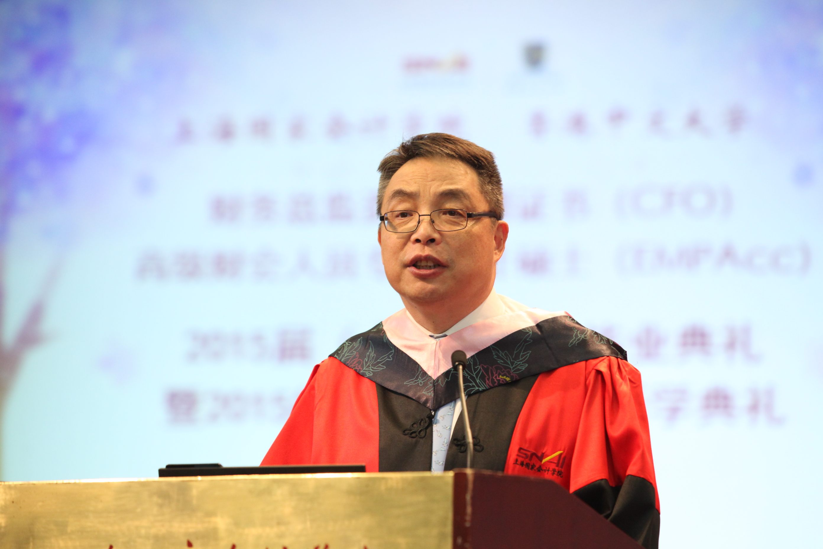 陈家乐院长是今年香港中文大学商学院新上任院长,他代表合作方也为典礼做出了精彩发言。他谈到自己与上海国家会计学院的多次结缘,也对EMPAcc项目多年的合作成果进行了肯定和鼓励,对新的学员和毕业校友送出了衷心的祝福。