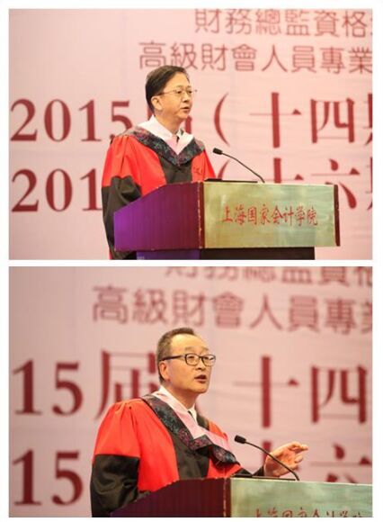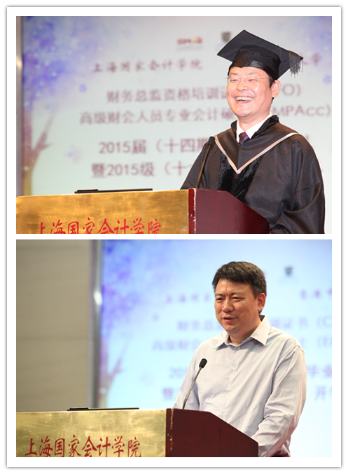 在颁证仪式结束之后,由EMPAcc14期毕业生代表周晓峻发表了毕业感言和EMPAcc16期新生代表施建军发表新生感言。