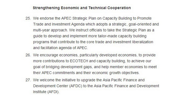 Asia-Pacific Finance and Development Institute listed in APEC Leaders’ Declaration