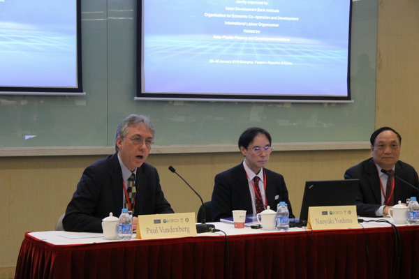 日期:2015-05-29The 5th Roundatable on Labour Migration, co-organized by Asia-Pacific Finance and Development Institute (AFDI), International Labour Organization (ILO), Asian Development Bank and Organization of Economic Cooperation and Development (OECD), was held in Shanghai National Accounting Institute from 28th- 30th January. Dr. Peng Runzhong of AFDI and Dean Naoyuki Yoshino attended the opening session, and gave remarks. Near 60 Participants from Indonesia, Philippines, Pakistan, Nepal, Japan and other 17 Asia-pacific economies and international organizations attend the roundatble workshop. Officials from Portugal, Isreal, Australia, and Belgium consultes in Shanghai also joined the discussion.