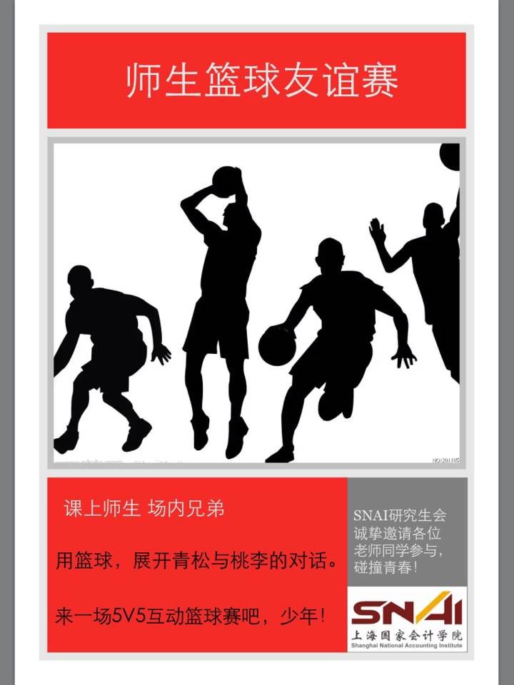 (撰稿/ 2013级郭澜 摄影/2013级郭澜)4月20日下午,随着裁判一声哨响,为了增进学院凝聚力,丰富同学校园生活,上海国家会计学院第二届研究生篮球赛在篮球场正式拉开序幕!此次春季篮球赛分为三大赛事:师生友谊赛、女子投篮赛及男子3V3对抗赛。“友谊第一,比赛第二”的精神贯穿始终,历时三天,留下的不仅是挥洒于篮球场上拼搏的汗水,更是在彼此之间系上了亲密相连的纽带。