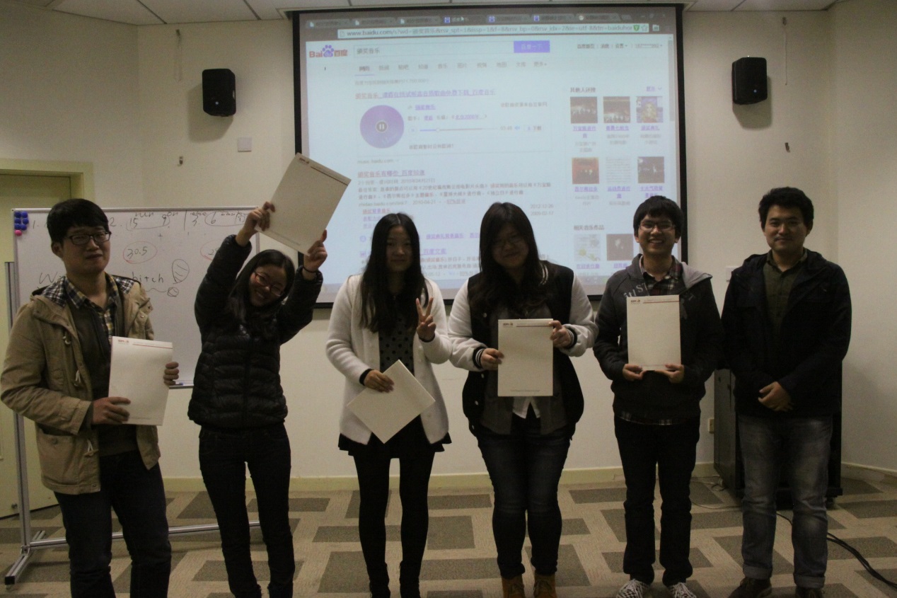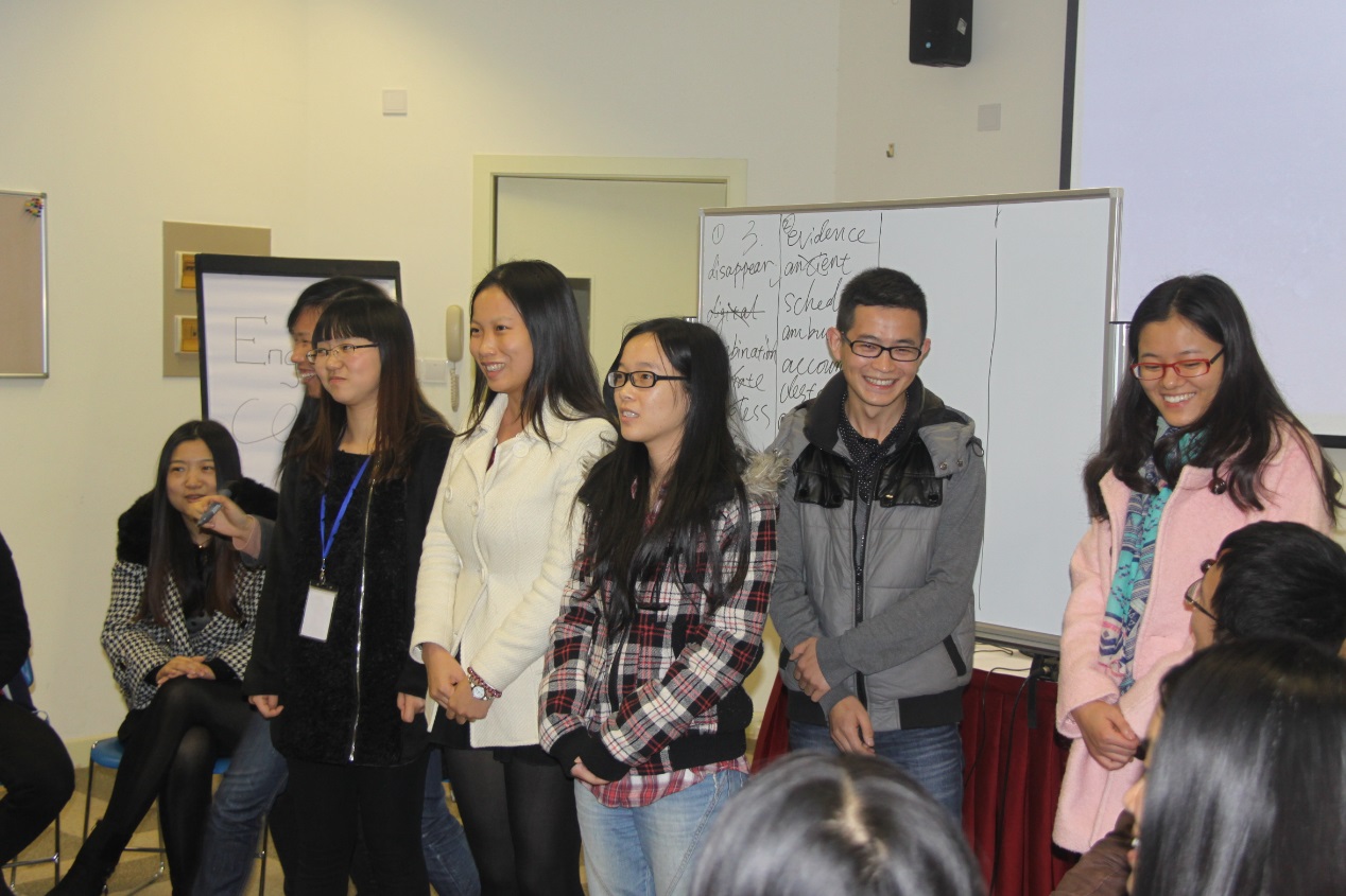 2014年11月10,我们的活动如期开展,本次活动共分为“听力训练与即兴问答”、“专业词汇分享与积累”、“英语游戏你说我猜”、“英语美文阅读与赏析”四个板块。活动期间高潮迭起,不过也难免存在一点点小插曲。