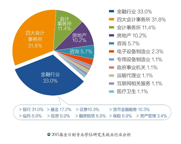 由于面向实务需求,实行定制化培养,2015届毕业生在严峻的就业形势中以100%的就业率凸显了学院研究生教育的成效。该届毕业生签约单位的所在区域以上海为主,除部分毕业生选择返回原籍工作外,大部分毕业生(占78.5%)选择留在上海工作。