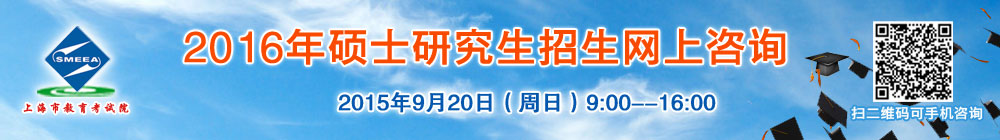 由上海市教育考试院组织,东方网协办的“2016年上海市硕士研究生招生网上咨询活动”,时间为9月20日(星期日)9:00~16:00,登录入口如下:http://zxanswer.eastday.com/FreeOfCharge/roomin?roomid=313。