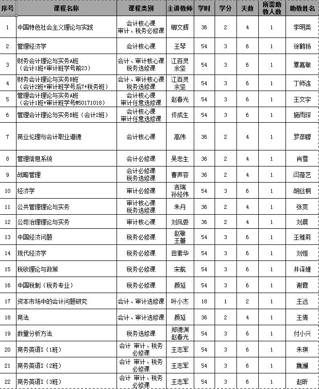 根据《 关于2017-2018学年第一学期招聘研究生担任课程助理的通知》(上国会研培养〔2017〕3号)的要求和《上海国家会计学院研究生课程助理管理办法》的相关规定,现确定以下研究生担任本学期课程助理: