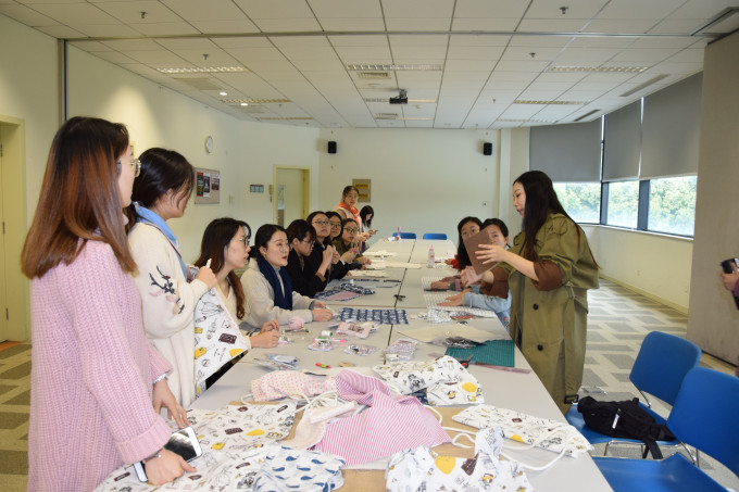开始动手前,大家纷纷挑选了自己心仪的布料,领取了所需的针线。待大家坐定后,生活部的同学们就开始DIY手工制作的小课堂了,按顺序介绍了手工帆布包、手工钱包和手工笔袋的制作流程后,大家就开始一边琢磨一边动工了。