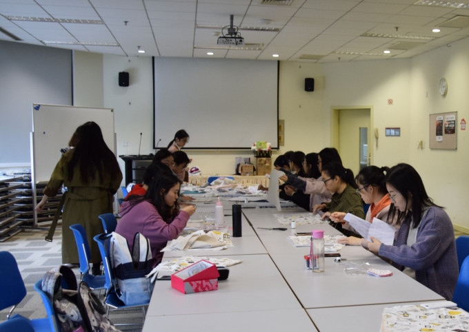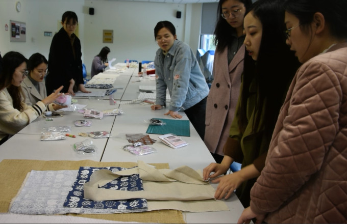 制作各个手工包袋的同学们分别聚在一起,回忆着刚介绍的制作方式,讨论着每一个步骤的细节,带着期待开始一针一针地缝起了自己的作品。本次活动中,有很多同学都没有什么手工活的经验,所以时不时地就有人缝错了步骤,只得重头再来,引起了众人的欢笑。然后在笑语声中帮助她理清了正确的流程,重新开始缝制。