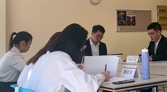 模拟面试依据同学们的现场抽签情况,分为四个小组进行群面,让大家在真实的体验中学习成长。