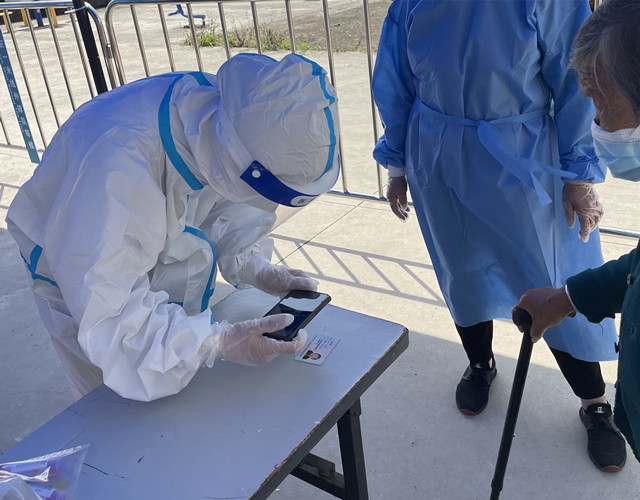 村子流动人口量大且多在村居没有登记,郑艺和另外一位村居工作者只能挨家挨户敲门询问,对外出上班户需抓好下班时间点。为了保证应做尽做、不漏一户,她们一遍遍确认还有哪家没做,一遍遍去敲那些尚未自测居民的家门。村里居住的大多是老人,不清楚如何做抗原自测,她们不厌其烦地一遍遍演示操作流程或者辅助他们做。十几户人家,近百人的抗原自测,她们花费了整整6个小时。