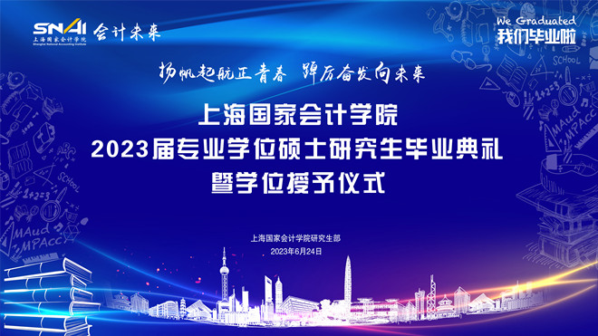 毕业骊歌起,青春将远行。上海国家会计学院2023届专业学位硕士研究生毕业典礼暨学位授予仪式将于2023年6月24日9点在国际会议中心开幕。2022年6月那场线上的毕业典礼让2022届毕业生们在云上相拥。在此,我们敞开怀抱,诚挚邀请2022届毕业生回家再走一场毕业典礼。今年,研究生部为毕业盛典首次精心打造了SNAI毕业小镇,为178位2023届和134位2022届毕业生送上毕业祝福,留下与母校的深深记忆。