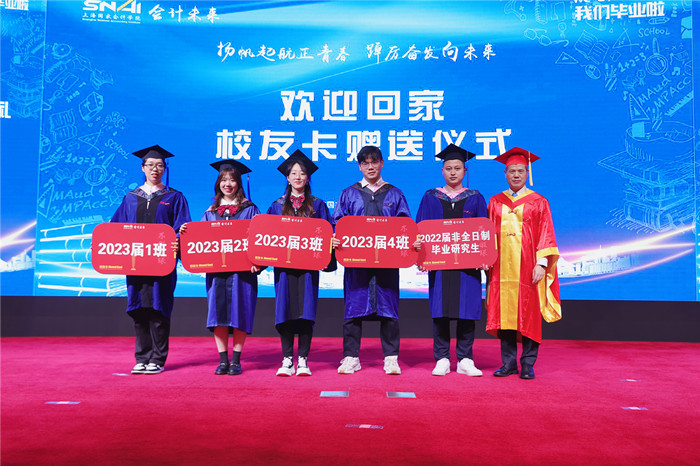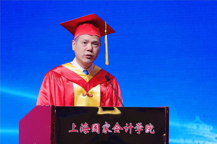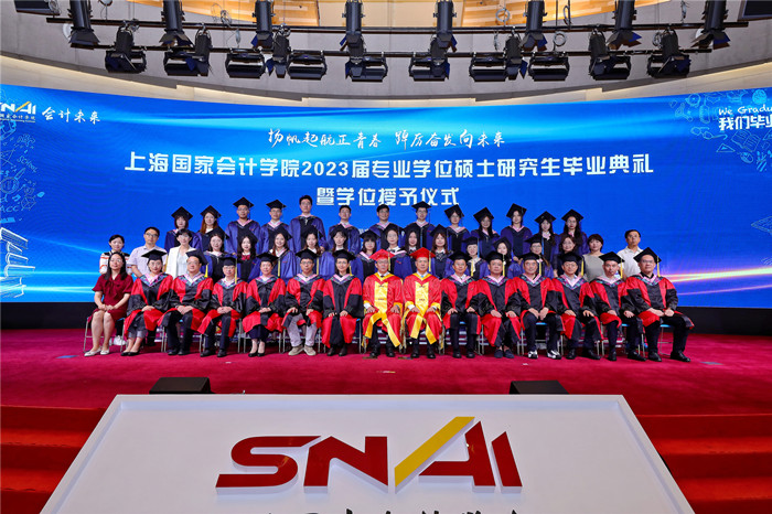 毕业骊歌起,青春将远行。6月24日上午,上海国家会计学院2023届专业学位硕士研究生毕业典礼暨学位授予仪式在国际会议中心举行。学院党委书记张锋,学院党委副书记、院长卢文彬教授,学院教师代表、校友嘉宾共同出席典礼。2023届178名毕业生、2022届66名毕业生及家属亲朋参加典礼。毕业典礼由研究生部主任郑德渊主持。典礼前的歌曲快闪,唱响了青春,点燃了氛围。伴随着雄壮的国歌,典礼拉开了帷幕。