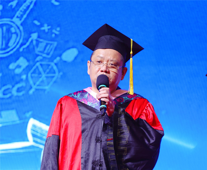 卢文彬院长在典礼上发表致辞。卢院长代表学院对毕业生表示祝贺,对研究生培养给予最大支持的老师、校友、家人们表示感谢。卢院长充分肯定了毕业生们好学不倦、顽强拼搏、坚韧不拔、勇往直前的奋斗姿态,并与大家分享了四点感悟。一是管理好自己情绪,做一个自律的人。只有懂得如何控制痛苦与快乐,不为其反制,才能掌控人生。二是拥有善良之心,做一个有良知的人。只有心怀善良,人生之路才能行得远、行得稳。三是坚持终身学习,做一个有智慧的人。“学习”永远没有毕业之说,坚持不断努力学习,做一个终身自主学习的人。四是知行合一,做一个有担当的人。务实求真,勇担重任,成己成物。