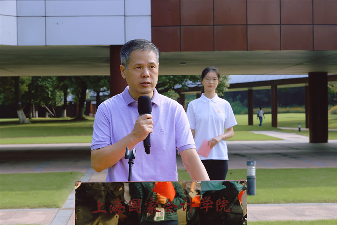 上海国家会计学院党委副书记、院长卢文彬发表讲话。卢文彬指出,学院全体师生肩负着国家的责任,也是学院发展的重要支撑。希望大家以更愉悦的身心、更健康的体魄、更坚定的信念、更高效的学习和工作,追求卓越、奋发有为,在服务国家、服务社会中实现个人价值,为建设国际知名会计学院作出更大贡献,为中国式现代化建设增光添彩。
