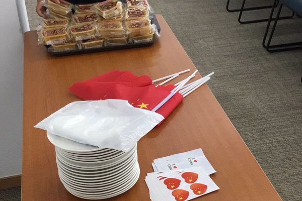 Due to the pandemic, 18 students of the 2019 class could not return to China in February as originally planned. They joined the event together with the other 12 international students on campus via ZOOM to learn the background knowledge of the National Day as well as the origin and customs of the Mid-Autumn Festival. During the event, moon cakes, the traditional delicacy special for the Mid-Autumn Festival were prepared for the students on site to share and taste.