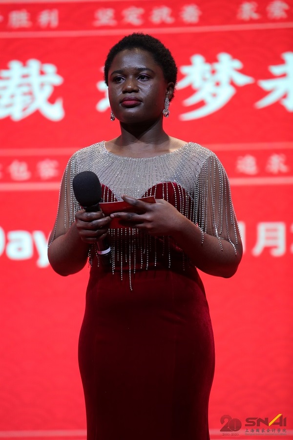 Ms. Chioma Rita Okafor from the Ministry of Finance of Nigeria volunteered to be one of the hosts of the celebration party. Her fluent and standard Chinese pronunciation left a deep impression on the audience. Other six international students of 2019 class from African countries performed a dance "African Step Dance".